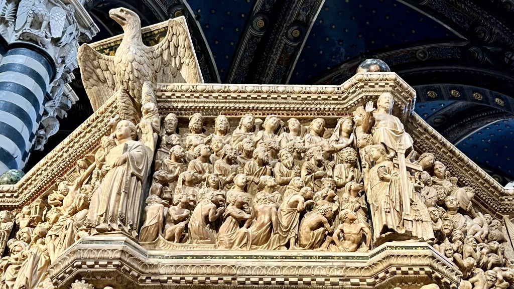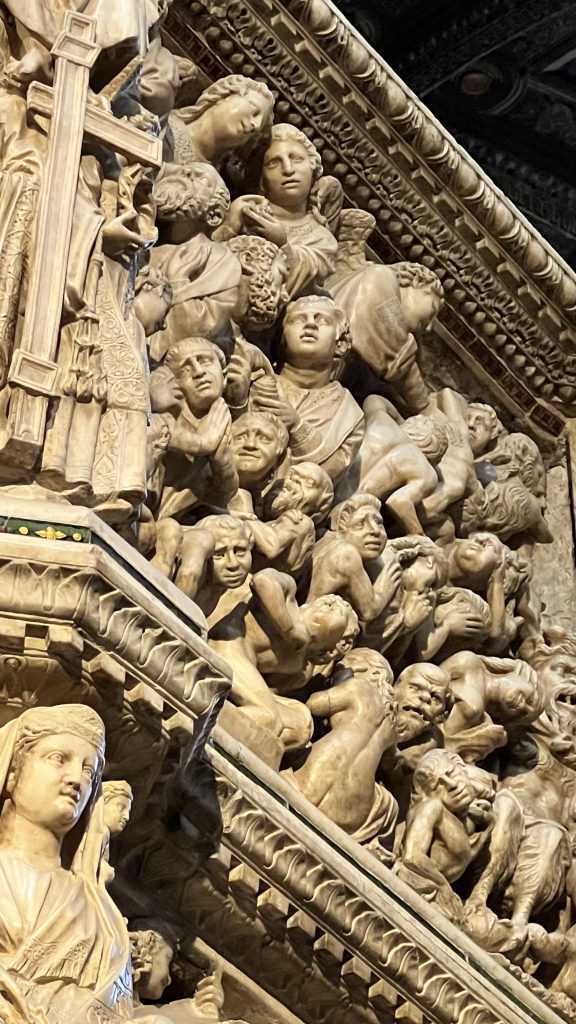 Dann die fantastische Kanzel von Niccolo Pisano. Die Reliefs scheinen förmlich zum Leben zu erwachen und auch hier möchte man näher heran, um alle Einzelheiten bestaunen zu können.