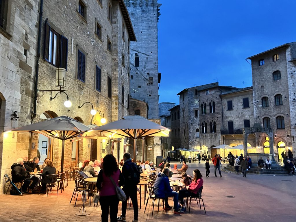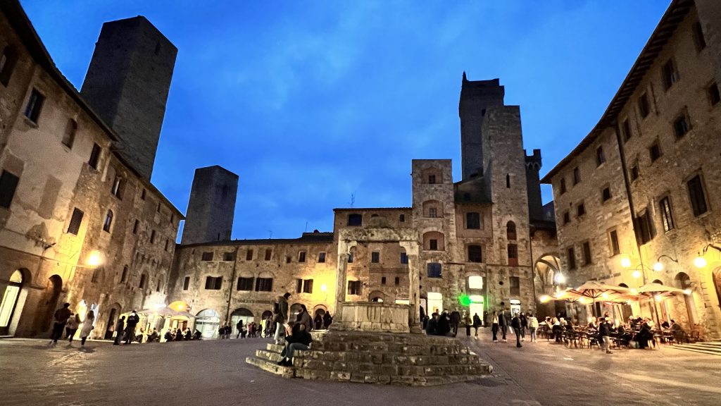 Und so lasse ich den Tag in der lauen Abendluft auf der Piazza della Cisterna in San Giminiano ausklingen, nachdem ich heute gleich zwei Schönheiten dieser fantastischen Gegend kennengelernt habe: