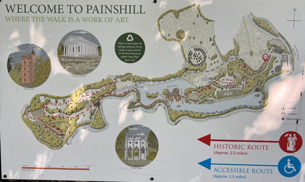 Unsere Morgenrunde absolvieren wir in „einem der schönsten Landschaftsgärten der Welt“, so urteilt jedenfalls Burgen.de. : Painshill Gardens
