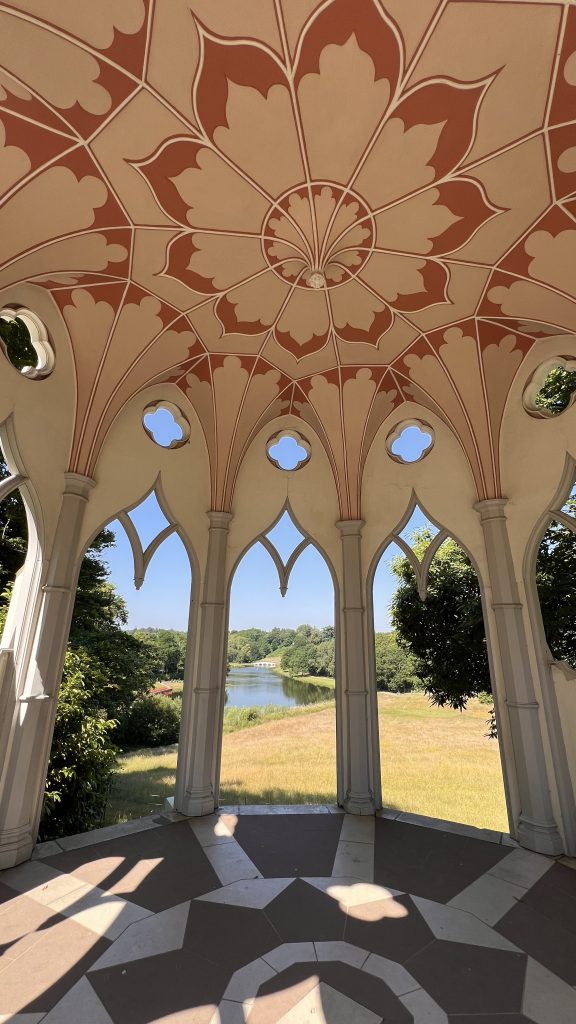 Und tatsächlich haben wir es hier mit einem der ersten Landschaftsgärten im englischen Stil zu tun. Charles Hamilton gestaltete ihn ab 1738 über fast 40 Jahre hin nach seinen Idealen, die er auf Reisen nach Italien entwickelte. Dafür legte er Teiche an, leitete Bäche um, baute Brücken, erschuf Inseln an. Auch eine Grotte, einen gotischen und einen antiken Tempel ließ er errichten und verausgabte sich dabei nicht nur finanziell. Auch aus gesundheitlichen Problemen musste er den Park 1773 verkaufen. Unter den neuen Besitzern verkam der Park, Teile davon verkaufte man gar zur landwirtschaftlichen Nutzung. Erst seit 1980 wird das Refugium von einem Trust verwaltet und wieder zu altem Glanz gebracht, aber ganz fertig ist man ja nie, mit seinem Garten….