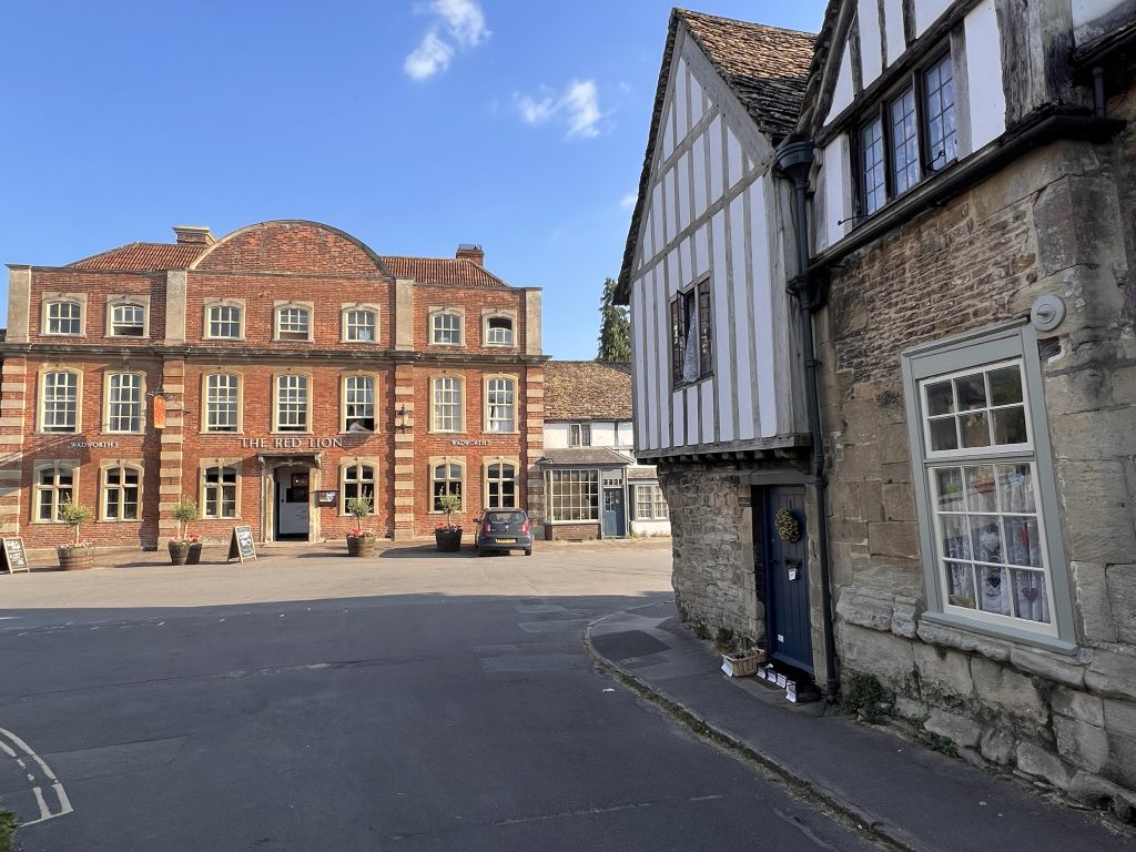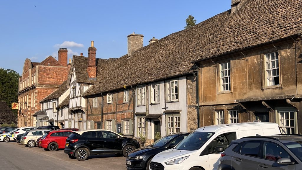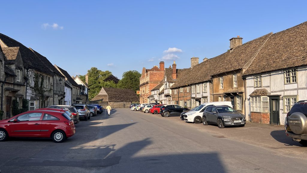 Der letzte Ort des Tages soll Lacock sein, das sind aber noch 1,5 Stunden Fahrt bei brütender Hitze. Zum Glück läuft alles gut und gegen 16:00 sind wir auf dem wunderbar geräumigen NT-Parkplatz angekommen. Hier reisen aber schon auffällig viele ab, denn vor allem die berühmte Lacock Abbey hat schon geschlossen. Ich such mir ein wunderbares Schattenplätzchen in der hinteren Ecke und wage eine kleine Hoffnung: Vielleicht kann ich ja hier bis morgen stehen? Der Mann in der Ticket-Office verneint, das wäre nicht gestattet – aber er gibt mir den Tipp, mitten im mittelalterlichen Dörfchen, gleich hinter dem „Red Lions“ – da kann ich übernachten. Na prima, wenn die den Dicken so mitten im Dorf besser finden…