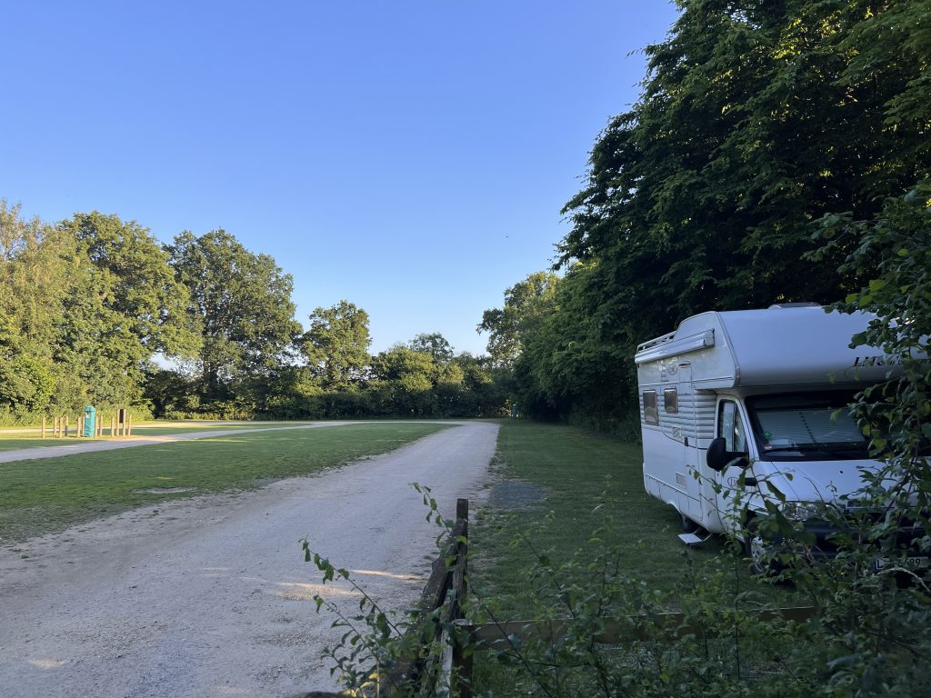 Der Parkplatz am „Red Lion“ ist nix für mich: zu eng, zu laut und nur Asphalt, nebenan ne Kneipe – nö. Da versteck ich mich lieber hinterm Busch und  hoffe, dass mich keiner findet und freu mich auf morgen: Lacock-Abbey, ich komme.
