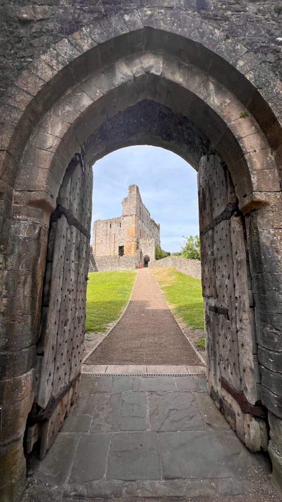 Auf eine Anhöhe über dem Wye thront diese terrassenförmig angelegte Burg unweit der Mündung und diente so als Absicherung der Grenze von Wales, hat also neben dem Drachen wichtige Aufgaben im Kampf gegen die Feinde übernommen. Besonders beeindruckend ist für mich die mit 800 Jahren älteste Tür Europas. Bis 1962 verschloss sie als Haupttor den Burgeingang und genießt jetzt in einer Seitennische den Ruhestand. Wer da wohl schon alles geklopft hat?