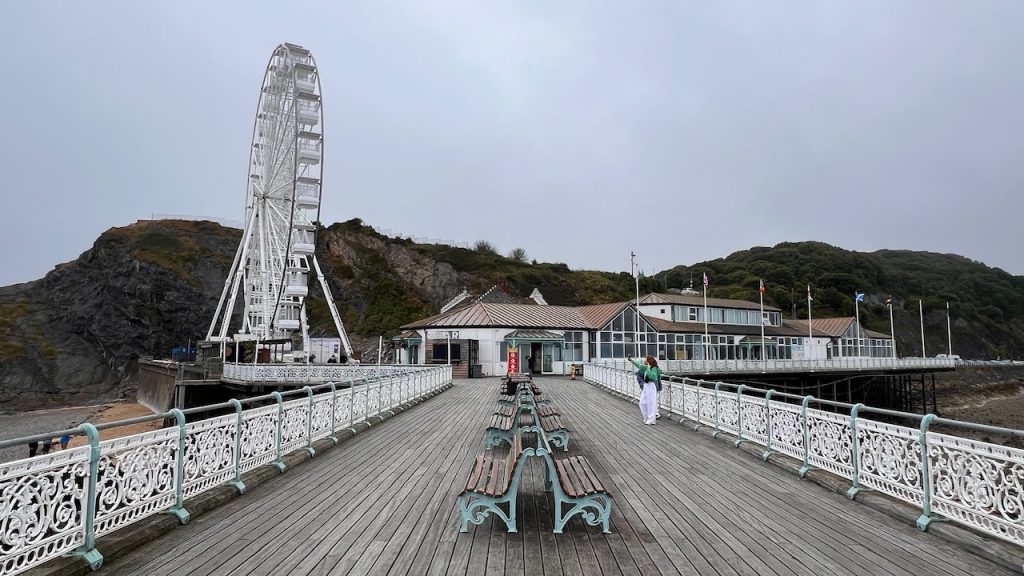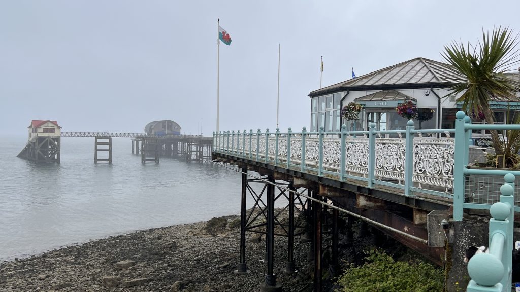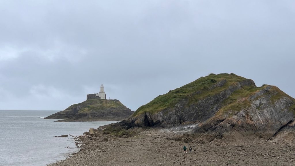 Bei andauerndem Regen fahren wir weiter über Swansea zum kleinen Örtchen Mumbles. Das ist ein historisches Seebad am Eingang zur Halbinsel Gower. Aber heute ist es scheinbar eine ziemliche Baustelle. Die komplette Promenade ist aufgebaggert. Am Ende des Örtchens ragt am historischen Pier der Felsen Mumbles Head in den Bristol Channel. Oben drauf thront ein kleiner Leuchtturm.