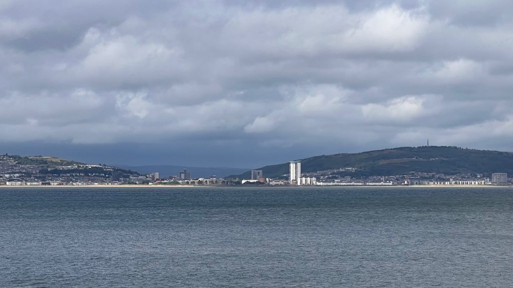 Wir suchen uns einen Parkplatz am Wasser und da hier mal ausreichend Netz ist schreibe ich einfach meinen Text, schau aufs Wasser und freu mich, dass es heller wird und man doch langsam Swansea erkennt.