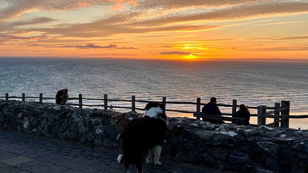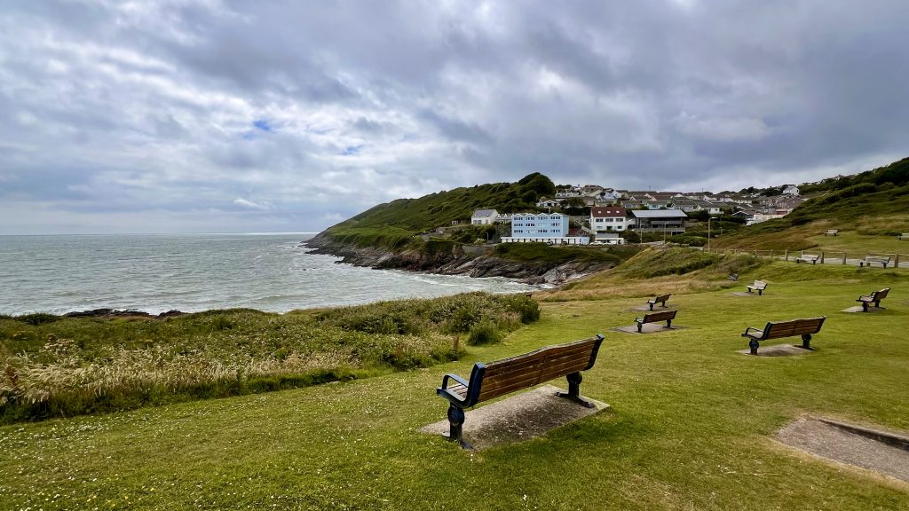Vom Mumbles Pier fahre ich erst einmal in die falsche Richtung, doch wie das manchmal so ist: der kürzeste Weg ist nicht immer der beste und so scheint es heute auch zu sein. Wir landen in der benachbarten Braclet Bay und nicht nur das Wetter klart auf, es ist auch ganz schön hier und so drehen wir noch eine kleine Runde. Mehr als 30 Bänke sind auf der Anhöhe verteilt und jeder ist eine Erinnerung an einen Verstorbenen. In Deutschland habe ich das noch nicht so oft gesehen, doch eigentlich ist das eine schöne Tradition. Man wählt einen Ort aus und kann sich hier an den Menschen erinnern. Manchmal ist es auch ein Platz, den der geliebte Mensch besonders mochte, auf alle Fälle hat man dann einen Erinnerungsort. Immer sind kleine Schilder angebracht und ich stelle mir vor, wer das wohl gewesen sein muss. Ein Schild ist für ein Kind (12). Und an dieser Bank klebt ein zweites für Pit, ohne Daten, verbunden mit dem Wunsch, das beide wohl im Himmel für immer miteinander spielen können – das Kind und der Hund.