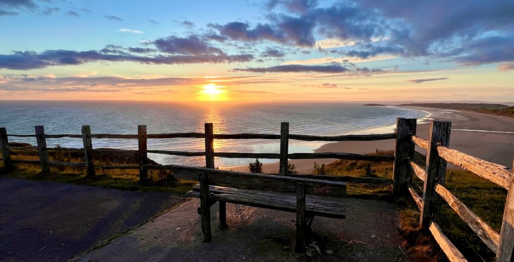 Fast zwei Stunden laufen wir hier mit ein paar anderen Besuchern an der Steilküste entlang und ich freue mich diebisch, dass es in diesem Jahr so zeitig Ferien gab. Wie voll es in der Hochsaison sein muss, lässt die Größe der Parkplätze erahnen. Heute ist das wirklich sehr entspannt, ich kann den Ort, die Landschaft, das Meer ungestört genießen und so bleiben wir an diesem winddurchzausten Ort, bis die Sonne im Wasser versinkt.