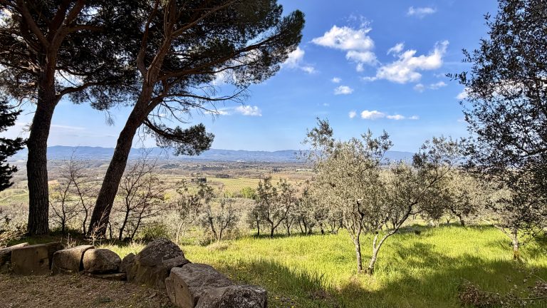 Das Valdarno erstreckt sich zwischen Florenz und Arezzo immer am Arno-Fluss entlang und grenzt an das Pratomagno-Gebirge, einem Teil des toskanischen Apennin. Von meinem Garten hinter dem Haus habe ich einen wunderschönen Blick auf den Gebirgszug und sehe sogar den noch schneebedeckten Gipfel des Pratomagno (1592m) am Horizont. Dahinter gehts wieder hinab ins Tal des Casentino und wenn ich mich umdrehe, dort, auf der anderen Seite der Autobahn, da ist die Chianti-Region.