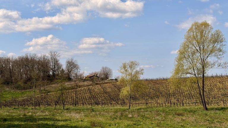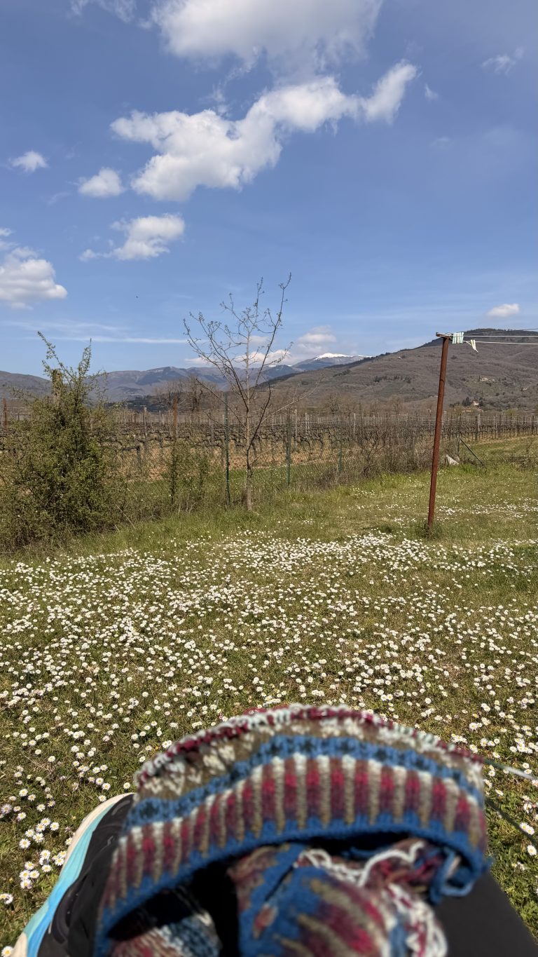 Und da wir beide die Nase voll haben von der Autofahrerei, machen wir gleich nach dem Frühstück erst einmal eine kleine Wanderung durch die Umgebung. Es geht durch Weinberge und Olivenhaine und ein kleines Stückchen den Hügel hinauf und seht mal da unten, da wohn ich.