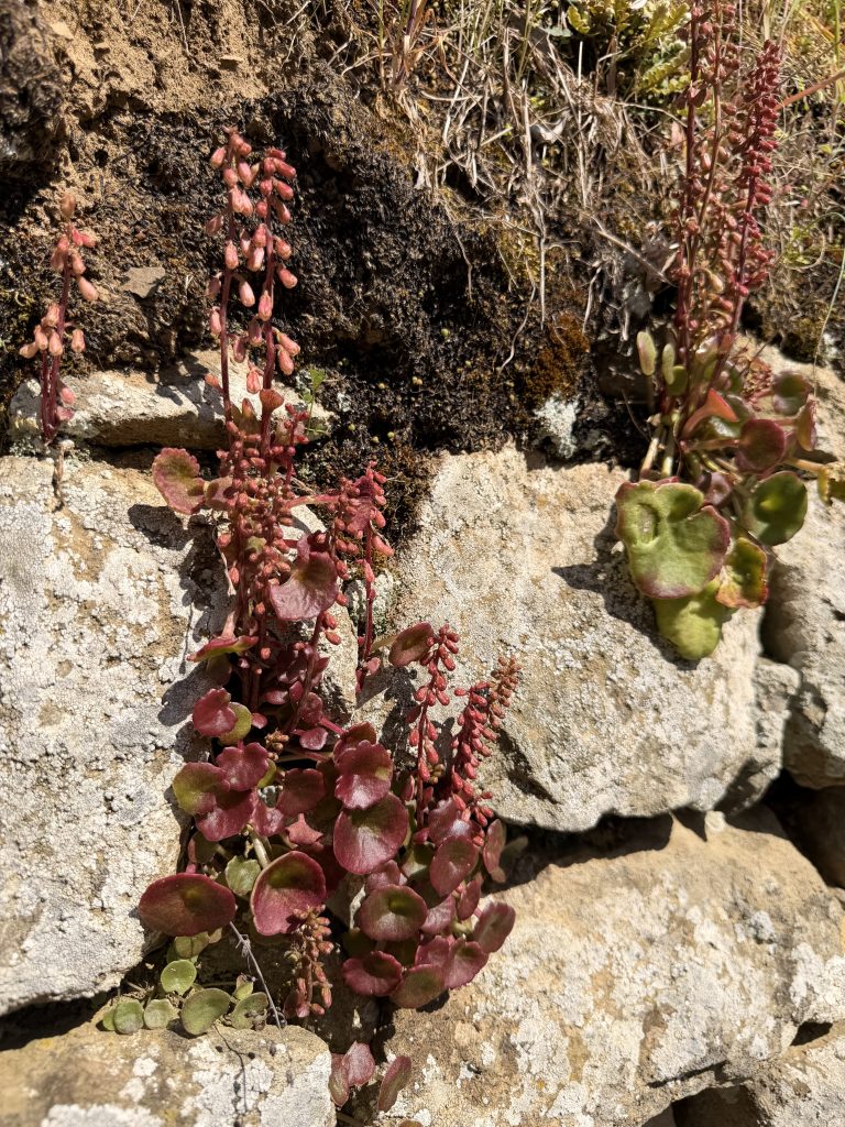 Ich gönn mir einen Cappuccino und dann geht es noch ein par Kilometer den Berg hinauf in den kleinen Weiler Gropina. Vier Häuschen und eine kleine romanische Kirche aus dem 12. oder 13.Jahrhundert liegen einsam zwischen den Weinbergen. Kaum ein Mensch verirrt sich hierher und ich genieße zuerst einmal die Pflanzenvielfalt. Kennt ihr z.B. den Bauchnabel der Venus?Voila – hier ist er, der Echte Venusnabel (Umbilicus, rupestris).