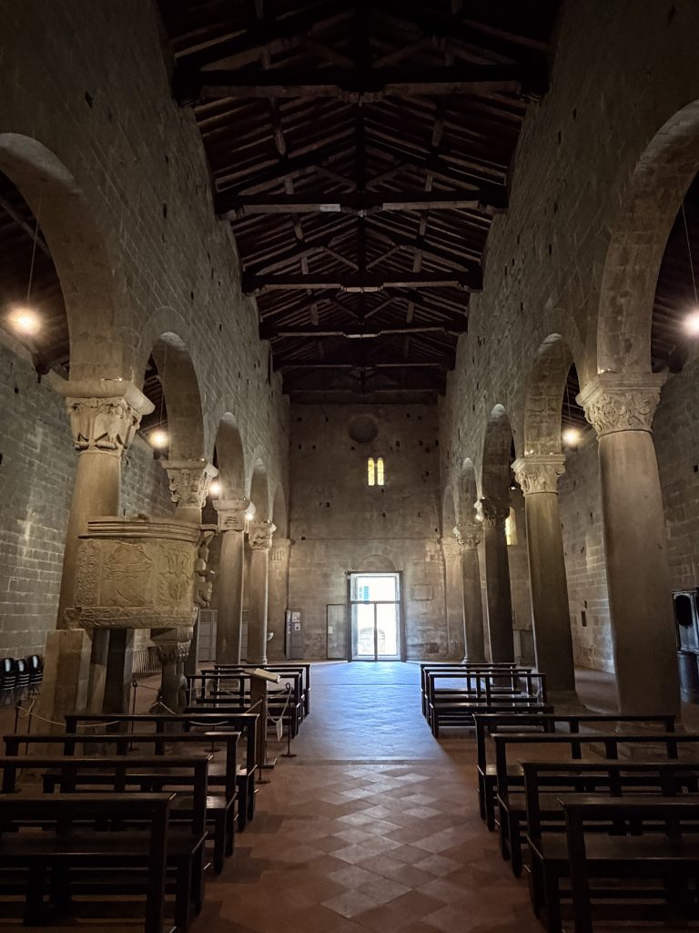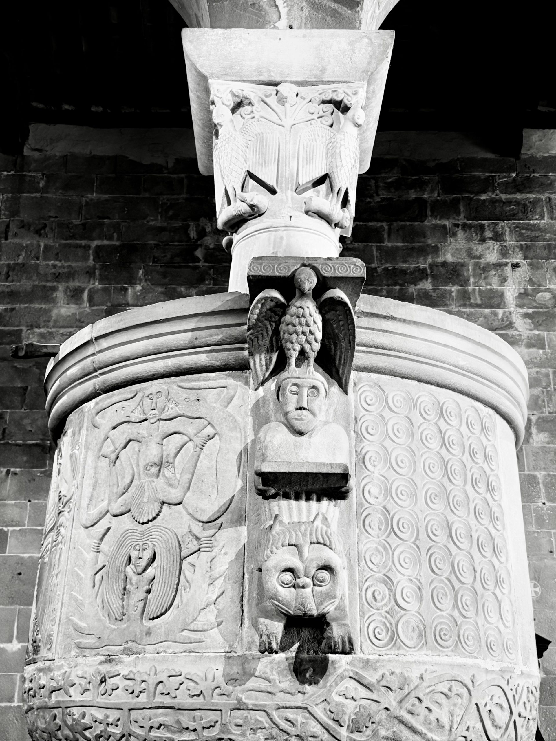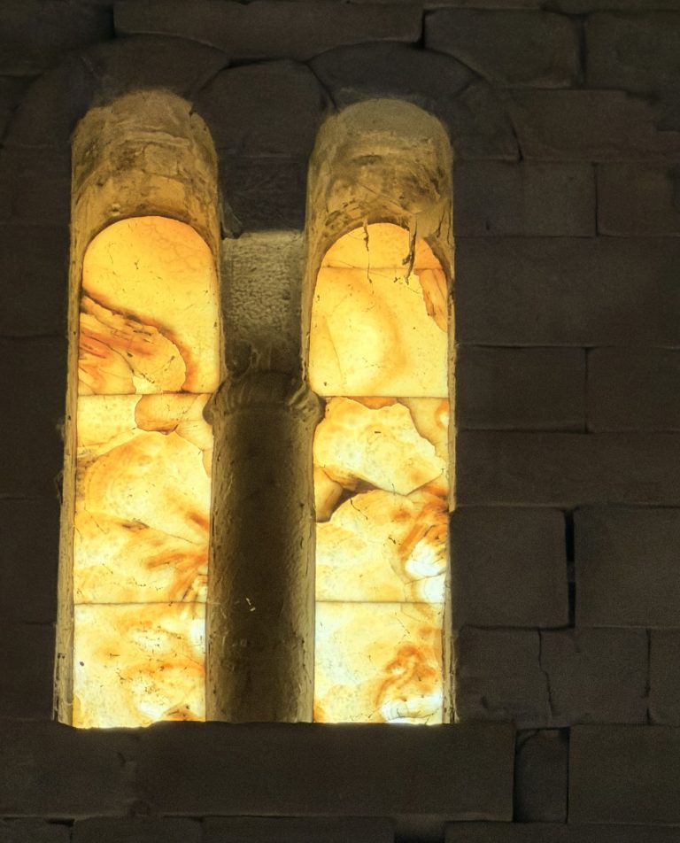Aber auch menschengemachte Schönheit ist zu bewundern. Die kleinen Fenster der schlichten Kirche sind mit Alabaster ausgekleidet und besonders schön finde ich die Kapitelle und die Kanzel.