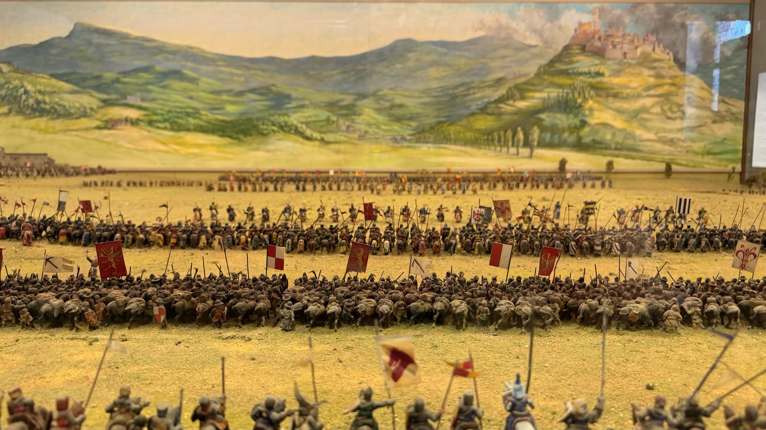 Kunstvoll ausgestattete Wohnräume, ein beeindruckender Innenhof, eine kleine Burgkappelle und ein riesiges Modell der Schlacht von Campaldino (1289) sind zu sehen. Auch eine Schulklasse ist im Museum und begeistert sich vor allem für die vielen Modelle der da Vinci Maschinen.