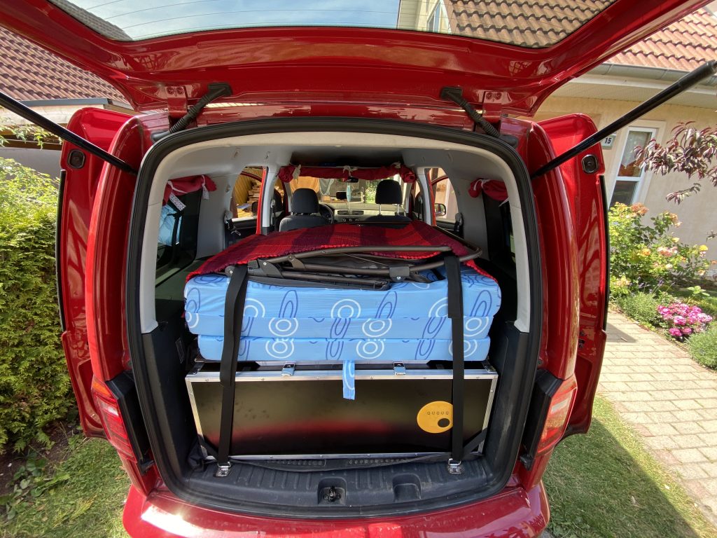 Was mache ich eigentlich im Caddy, wenn es Bindfäden regnet, so wie heute?…