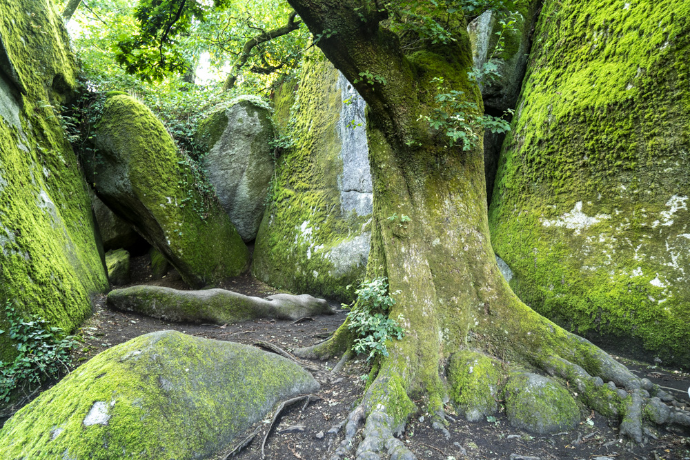 Tiefschwarz, so dunkel wie Teer und spiegelglatt liegt der Lac du Huelgoat am Morgen. Gleich…