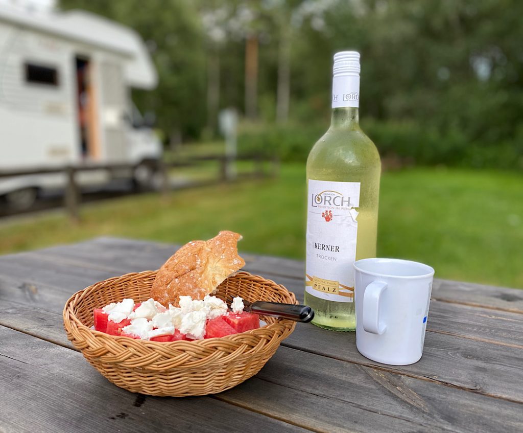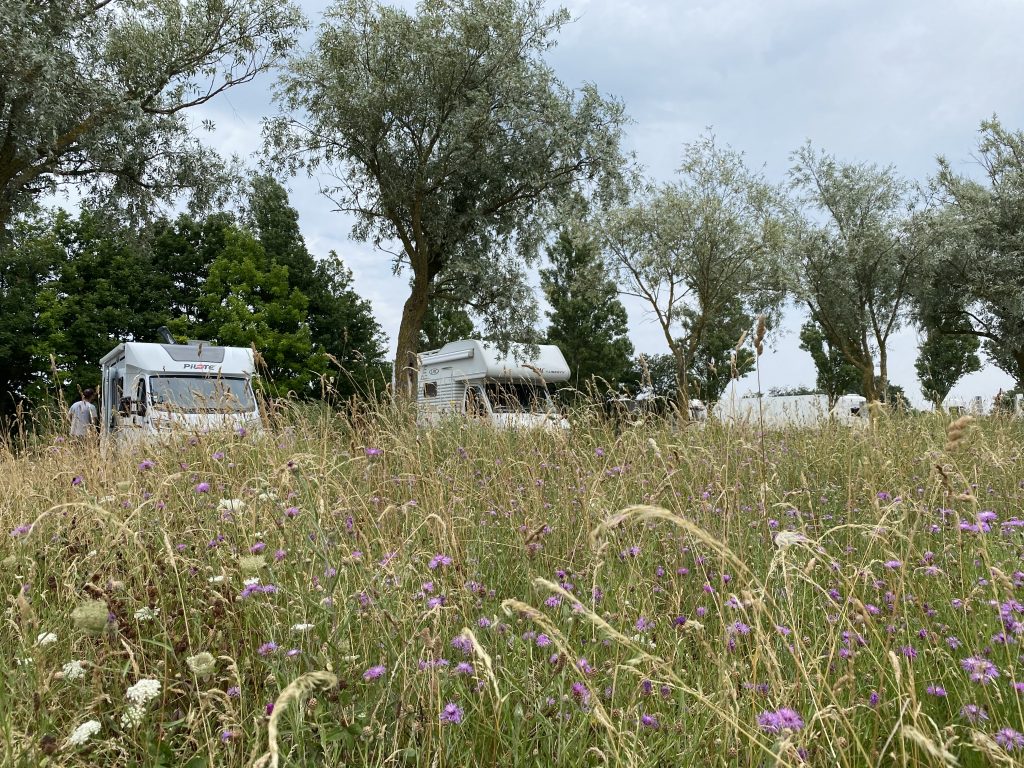 Neben mir stehen am Morgen noch drei weiter Wohnmobile: einer aus Leipzig, einer aus Chemnitz…